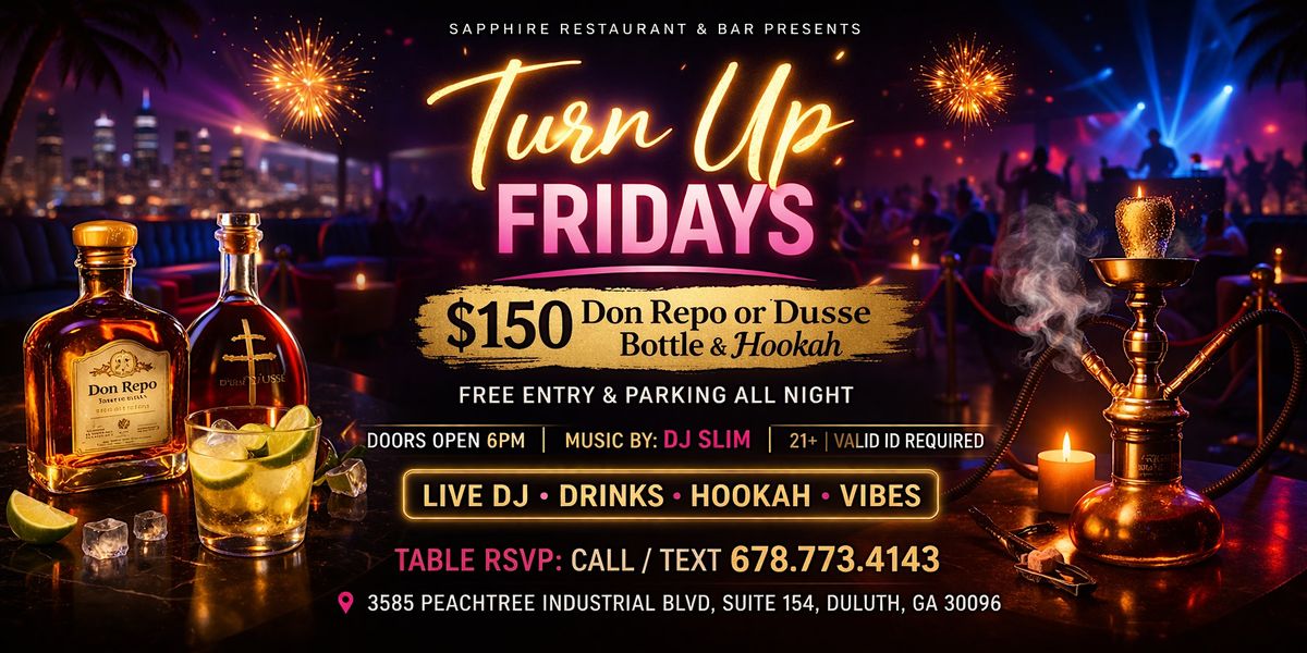 THE BEST FRIDAY NIGHT DEAL IN ATLANTA IS AT SAPPHIRE. GRAB YOUR CREW AND ENJOY OUR EXCLUSIVE $150 BOTTLE + HOOKAH SPECIAL EVERY FRIDAY NIGHT