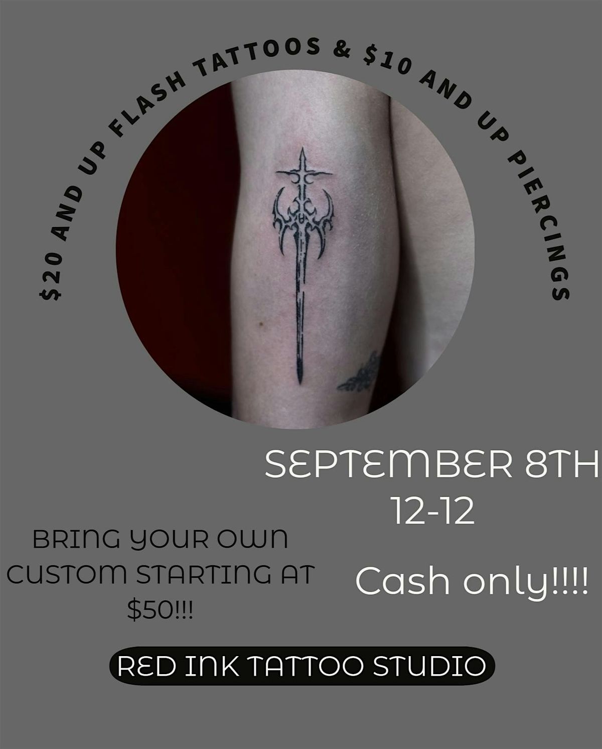 Hey there ink lovers! Get ready for an exciting event at Redink Tattoo Studio on SEPTEMBER 8TH 2026 at 12:00 PM! We're offering flash tattoos starting at $20 and piercings starting at $10. Come join us for a day filled with creativity and self-expression. See you there!