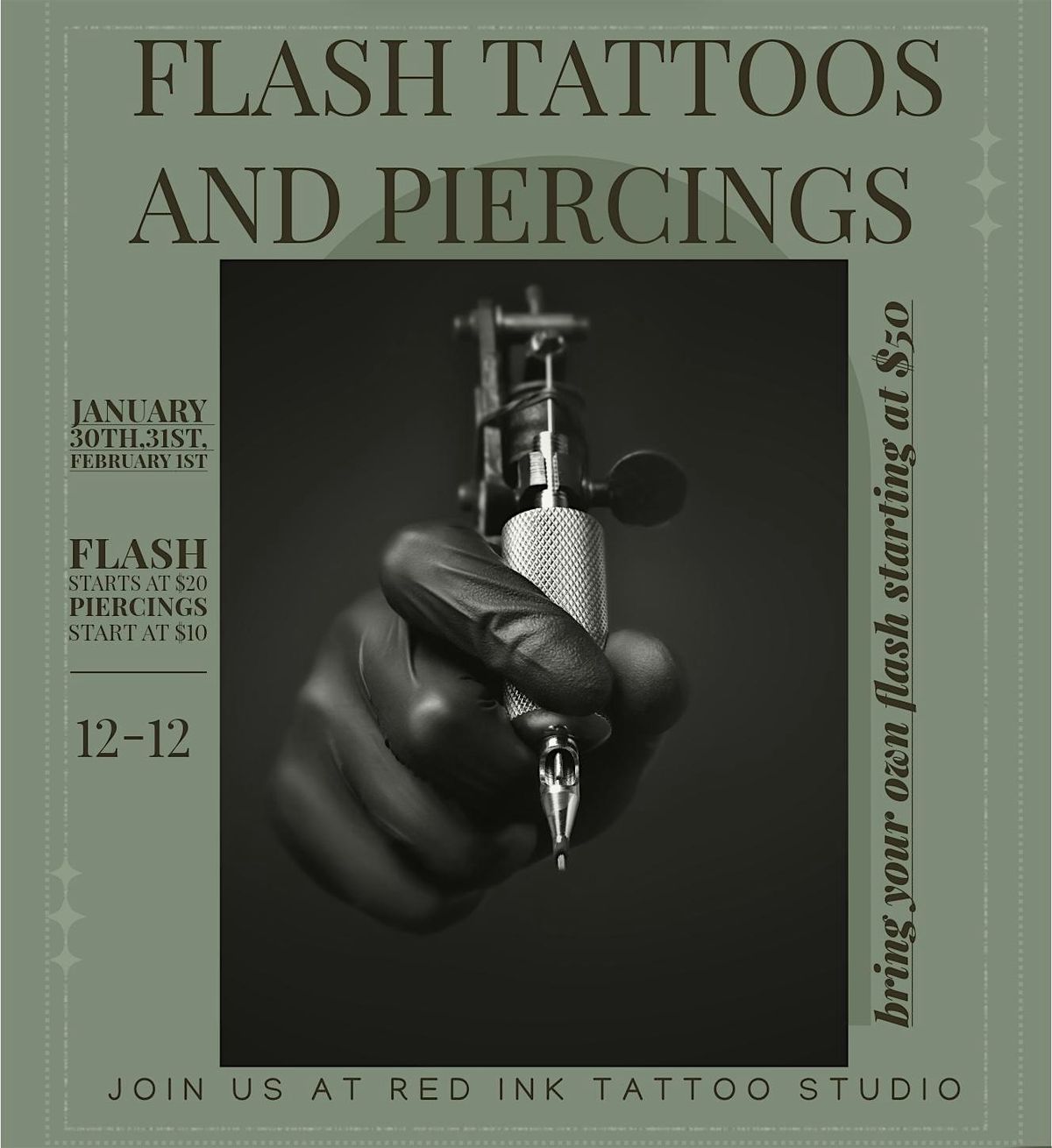 Hey there ink lovers! Get ready for an exciting event at Redink Tattoo Studio on January 30th, 31st, February 1st! 2025 at 12:00 PM! We're offering flash tattoos starting at $20 and piercings starting at $10. Come join us for a day filled with creativity and self-expression. See you there!