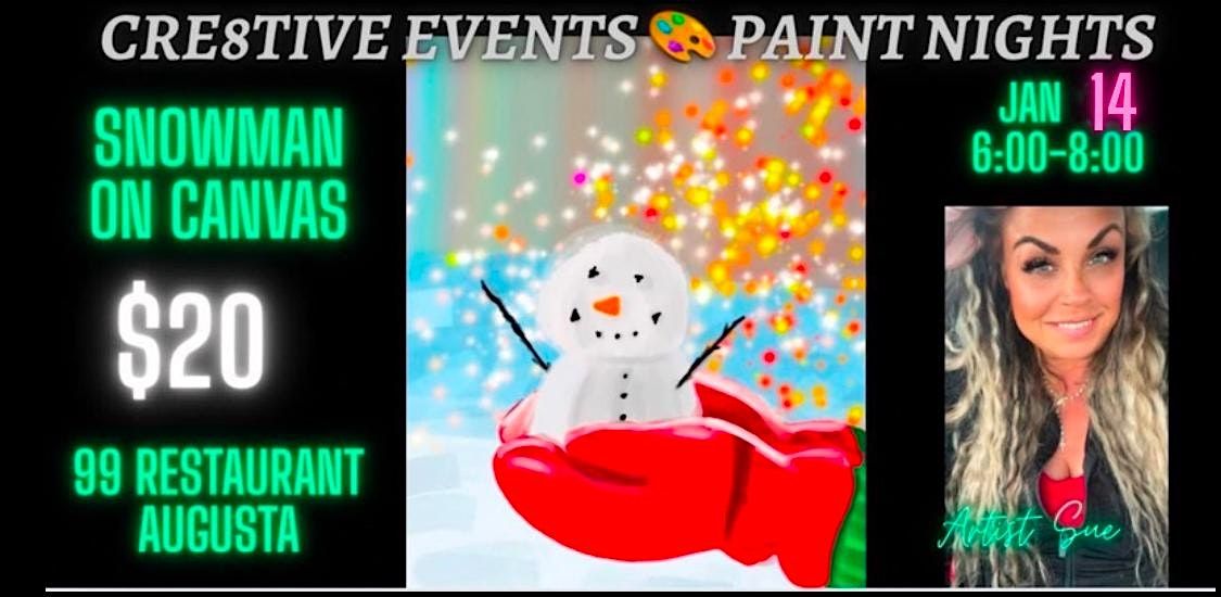 $20 Paint Night - Snowman on Canvas- 99 Restaurant AUGUSTA