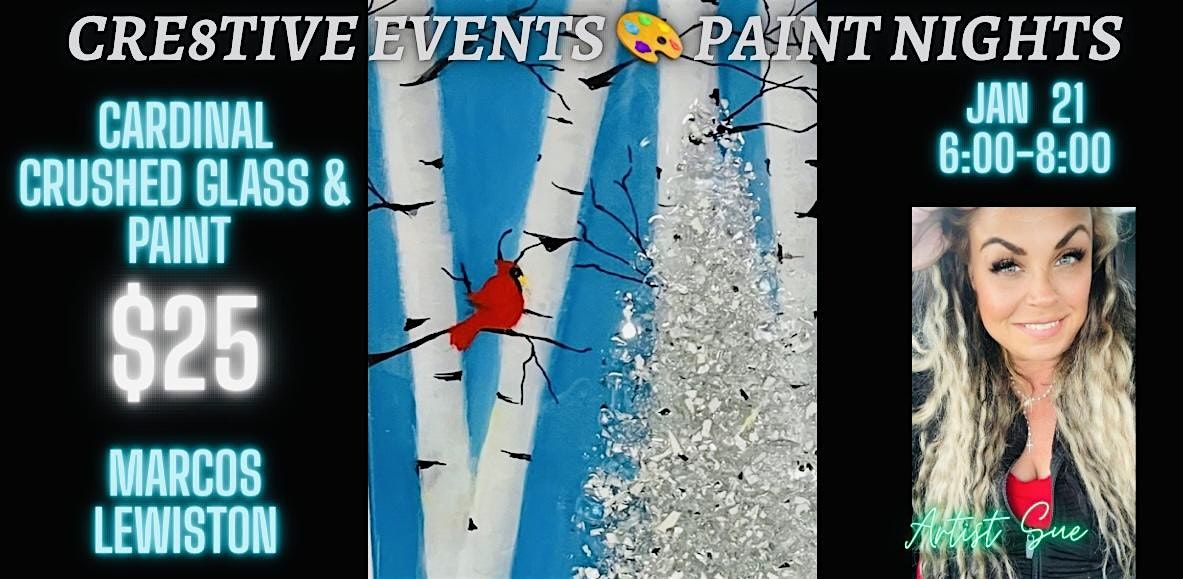 $25 Paint Night - Cardinal Crushed Glass & Paint- Marcos LEWISTON