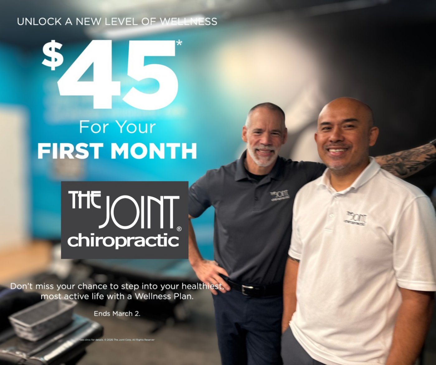 $45* First Month of Chiropractic Care in Gainesville, FL | The Joint Chiropractic