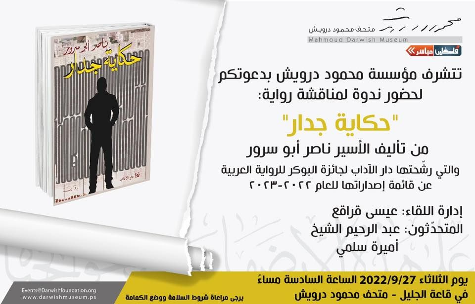 تتشرف مؤسسة محمود درويش بدعوتكم لحضور ندوة لمناقشة رواية: