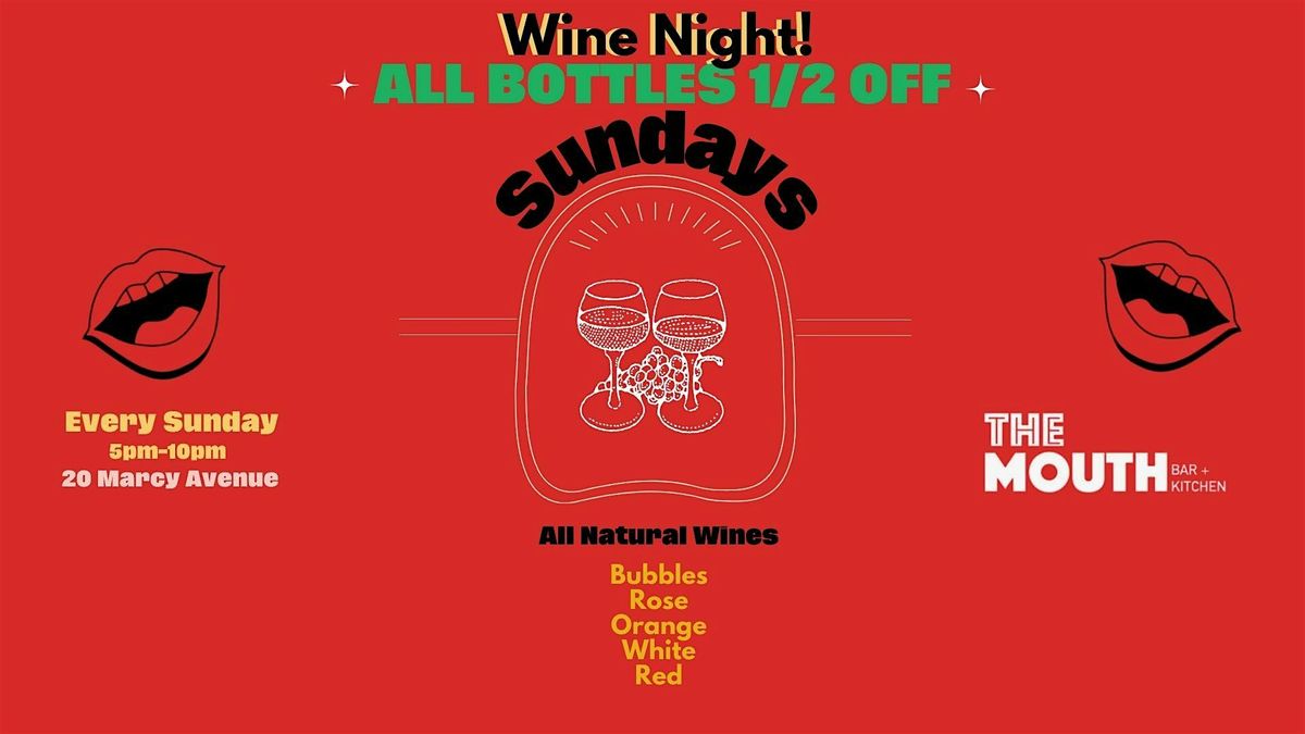 Welcome to The MOUTH Kitchen + Bar! Join us for our special event: 1/2 Priced Wine Bottles at The MOUTH. Treat yourself to a wide selection of wines at half the price every Sunday from 5:00pm-10:00pm. Come unwind and enjoy a relaxing evening with friends and family at our cozy venue. Don't miss out on this fantastic deal! See you there!