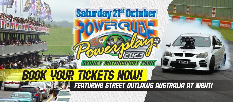 1 Day Powerplay returns to Sydney Motorsports Park for a killer day on the track of fun-Powercruise Style!! Full day of Cruise Sessions, Racing, Powerskids, Burnouts, Dream Team Demo’s & More! PLUS Keep your tickets on and stay to watch our Street Outlaws Australia List Racing after Powerplay is finished for the day! ONLINE ENTRY & TICKETS > > https://www.powercruise.com/online-booking/