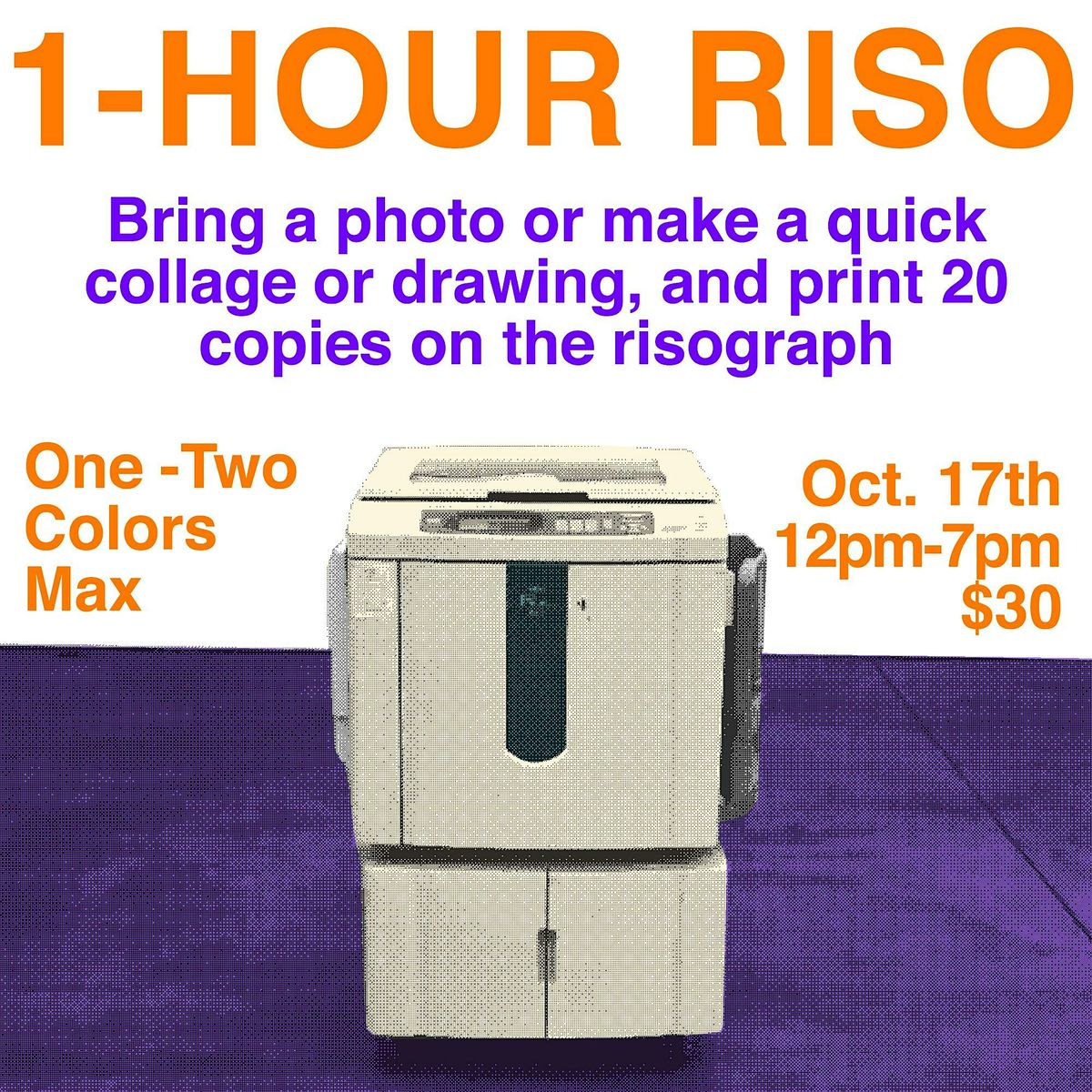 Join us for day of riso printing! Come by and participate in this quick turnaround open riso studio. Beginners and experiences artists can bring a simple photograph or design, or make something on the spot, and have us print it on our riso with a quick turnaround time. We will have supplies to make drawings, collages, or print an existing image. This session will be limited to one color or two color designs. We will print 20 copies of each design. To print extra copies, feel free to pay a small material fee.