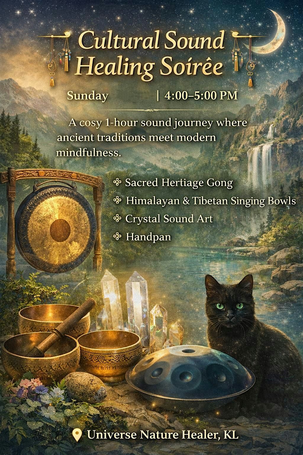 Step into an intimate 60-minute sound immersion where ancient cultural sound traditions meet modern mindfulness practices.
