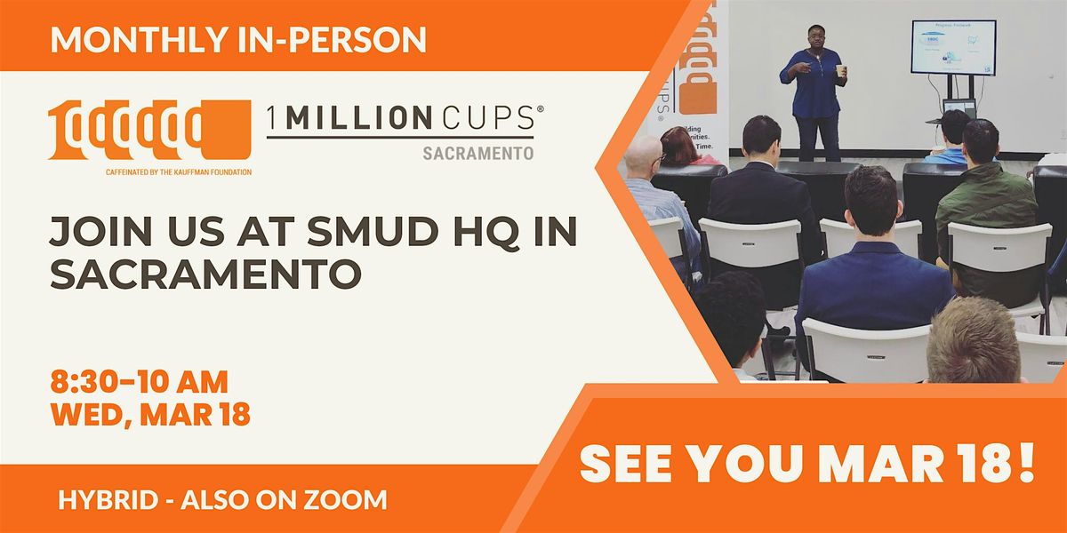 1 Million Cups Sacramento is having an in-person meetup on Wednesday, March 18, at SMUD HQ.