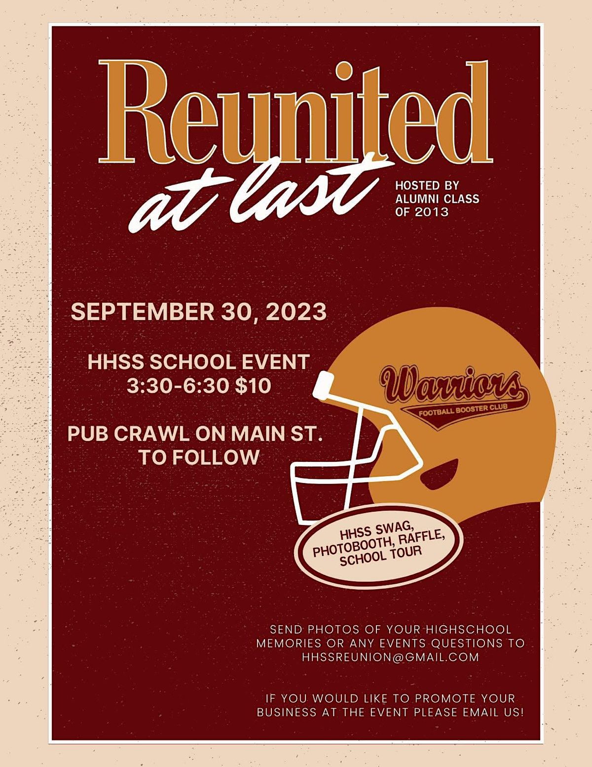 STEP ONE: Pick a time slot and come to the HHSS cafeteria for a slideshow, raffle, reconnecting with your people, making new memories with our photo booth, and swag. Two complementary raffle tickets included with ticket purchase.