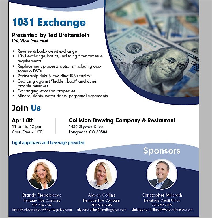 - 1031 exchange basics, including timeframes & requirements