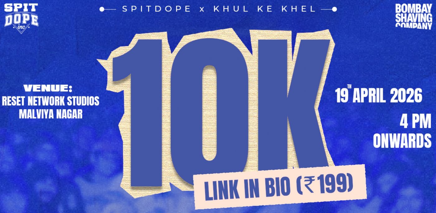 Experience the ultimate fusion of rhythm and rhyme at "10K : DAY-2 (SDI x Khul ke Khel)" brought to you by Spit Dope Inc! Join us on April 19, 2026, at 4:00 PM at the eclectic RESET NETWORKS STUDIOS in the heart of Malviya Nagar, New Delhi, for a one-of-a-kind event that blends the energy of rap performances and the thrill of rap competition.