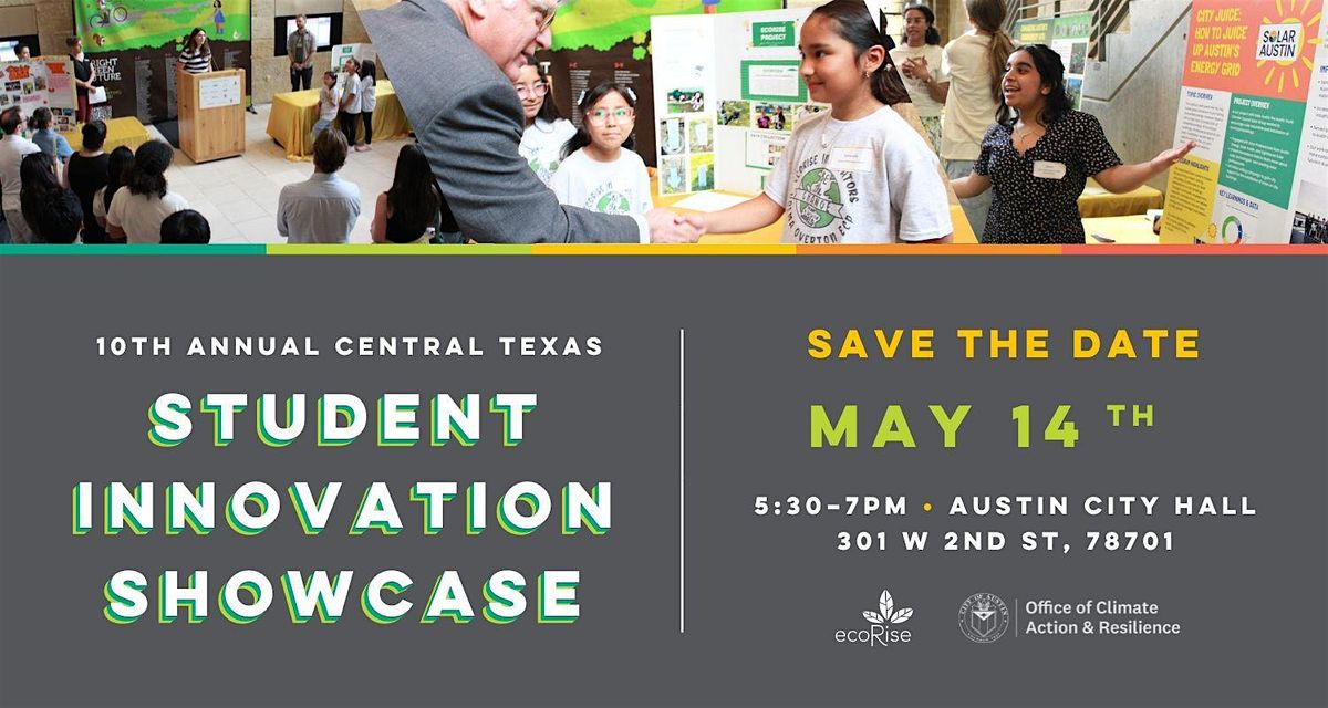 Join us to learn from and celebrate youth innovators and environmentalists from across Central Texas at Austin City Hall on Thursday, May 14th from 5:30 to 7pm.