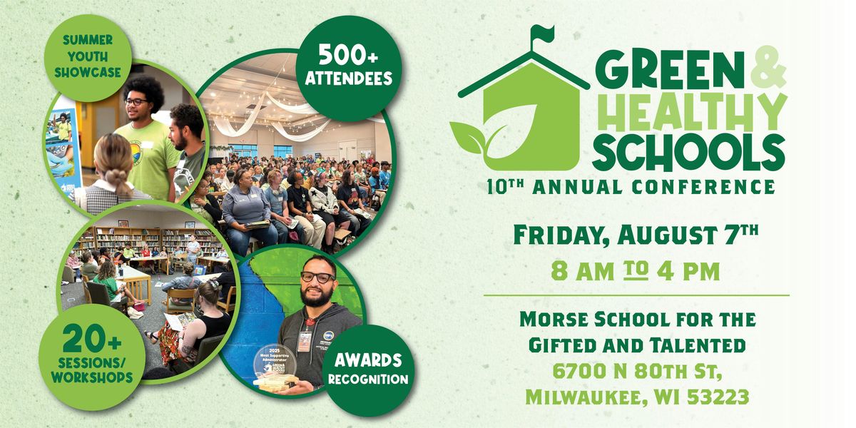 The annual Green & Healthy Schools Conference is an ideal opportunity to connect with the Milwaukee area's greener, healthier schools movement. The conference is an opportunity to hear inspirational stories, connect with curricular and funding resources, and learn how schools in the Milwaukee area are removing asphalt and enhancing their schoolyards with outdoor classrooms, improved recreation, arts, green infrastructure, and project-based learning. The conference is open to all and is an excellent opportunity to connect with some of your favorite community partners.