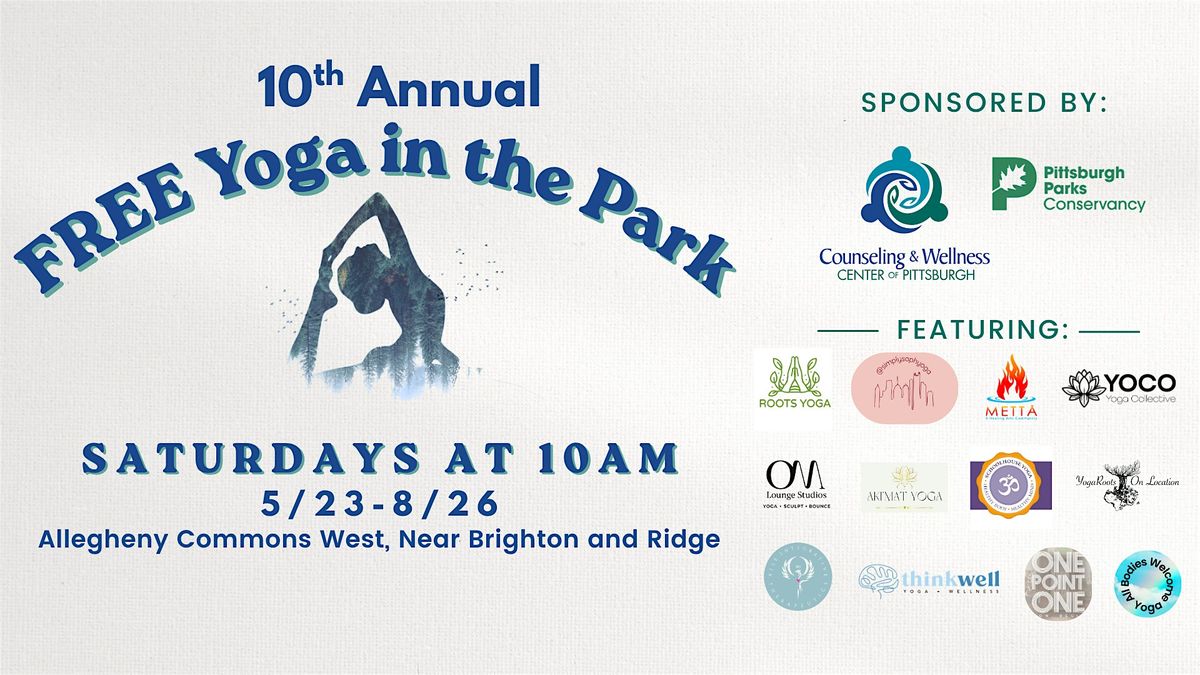 The Counseling and Wellness Center of Pittsburgh and the Pittsburgh Parks Conservancy are beaming with pride to celebrate 10 years of movement, mindfulness, and community! Join us for this milestone season as we transform the grass of Allegheny Commons West into the city's largest outdoor yoga studio.