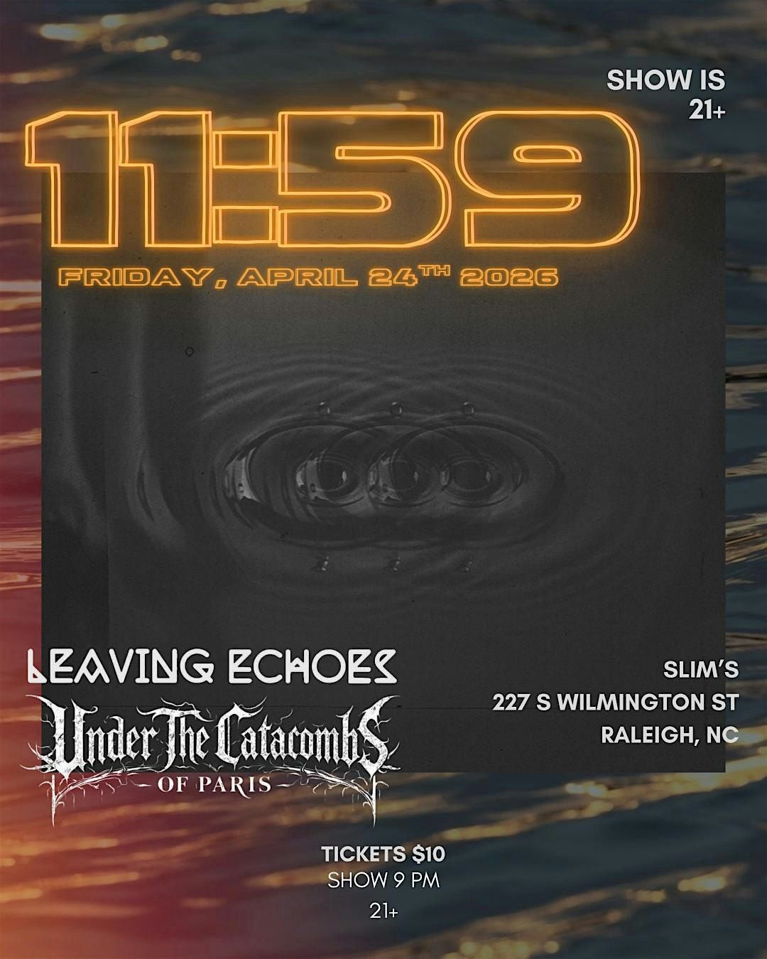 11:59 (heavy rock), Leaving Echoes (hard/alt rock), and Under the Catacombs of Paris (post hardcore/post punk) are performing at Slim’s April 24th, 9-11pm!