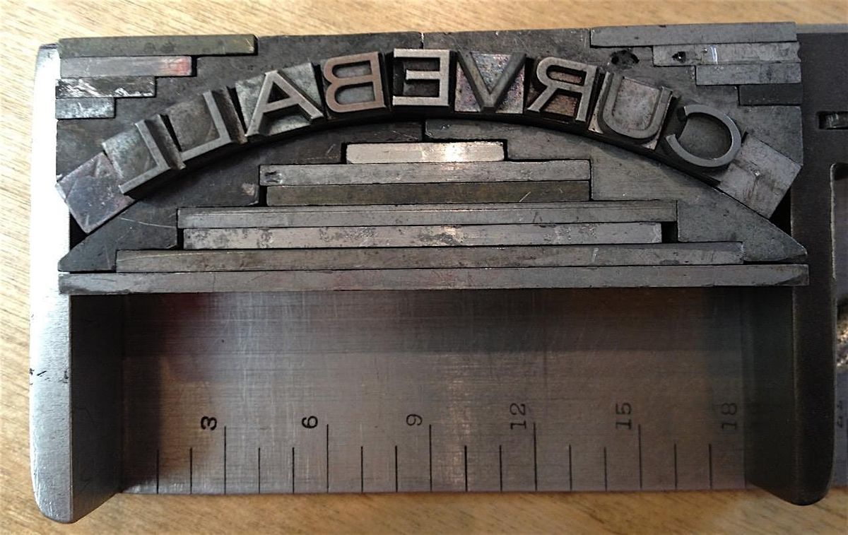 Utilizing the Dave Peat and Smithsonian Collections of rare metal type, we’ll discuss strategies for composing and printing fragile antique and ornamental type. After demonstrations in the use of circular quads along with a few other tricks, each student will explore typesetting curves or waves to be locked up, printed, and exchanged in a small edition.