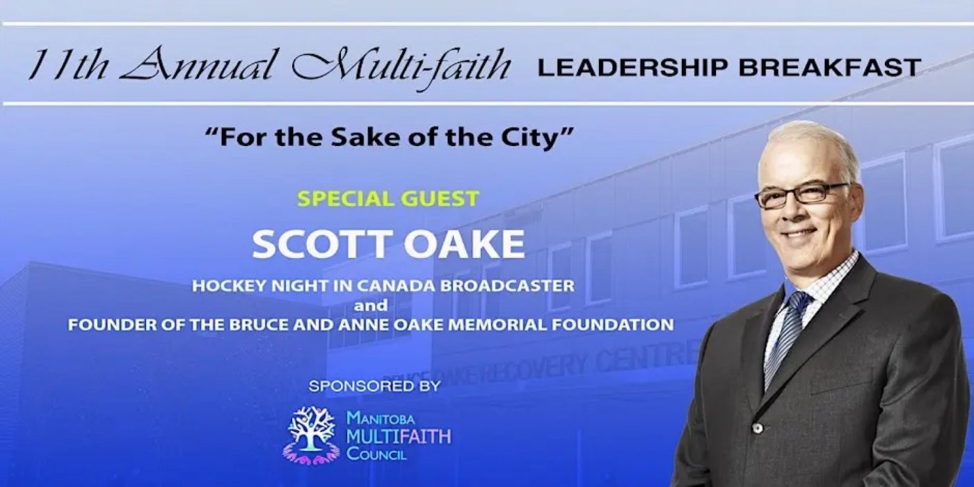 Last chance to purchase tickets for the 11th Annual Multifaith Leadership Breakfast event. This event comes on the heels of Scott Oakes retirement announcement. Scott has had a decades long illustrious career as Hockey Night in Canada and CBC Sports sports broadcaster. He is also a vocal advocate for addiction recovery and supports. We are very pleased to host him as this year's 'For the Sake of the City' guest speaker.