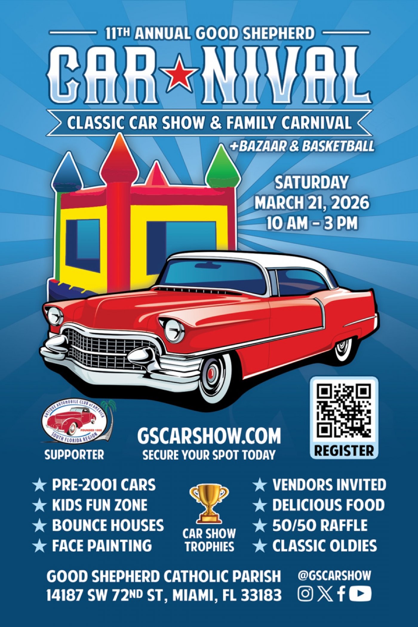 Join us for the 11th Annual Good Shepherd Classic Car Show on Saturday, March 21, 2026. Choose from 20 exciting vehicle classes and compete for the coveted Best in Class or Best in Show award.