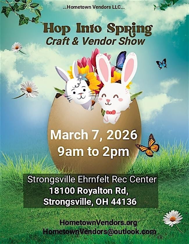 Help us Hop into Spring and come out to support our local crafters and other vendors.We will be at the Strongsville Ehrnfelt Recreation Center. The rec center is located behind the Strongsville Target. Our 70 plus vendors will have items to help you fill those Easter Baskets. We have something for everyone from handmade crafts to wood products, to jewelry, clothing, candles, wreaths, books, hand sewn items, and so much more.