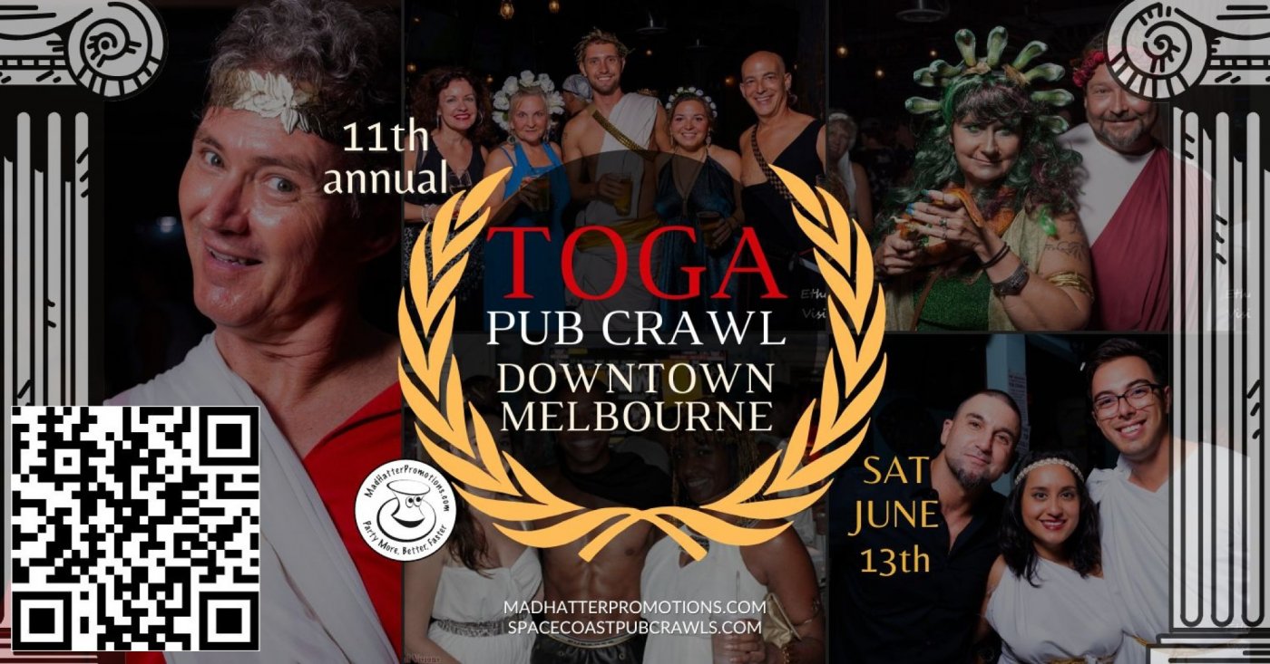 11th Annual Toga Pub Crawl Downtown Melbourne, Saturday, June 13, 5 pm to 10 pm, 2026