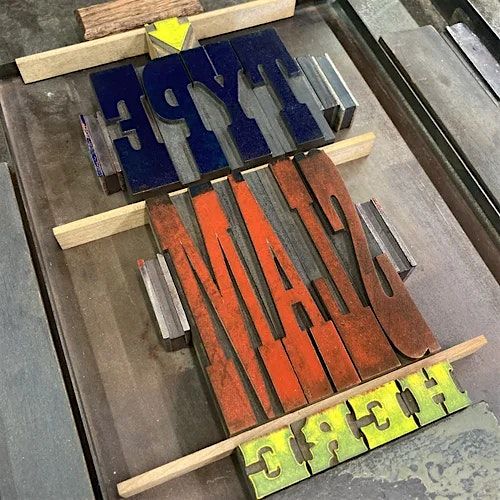 Print a traditional broadside with a modern vibe using rare wood type from the Dave Peat Collection. Compose a phrase. Select your font. Apply your color of ink. IMPRESS YOUR POWERFUL MESSAGE ON PAPER. This workshop is hands-on and very active. At the end of the class there will be a print exchange, in which you will take away a portfolio of prints made during the workshop.