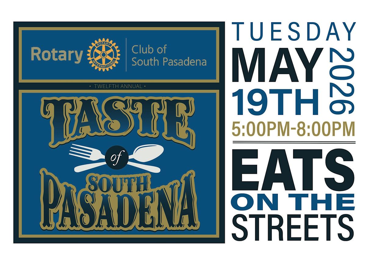 Thank you so much for supporting the 12th Annual Taste of South Pasadena sponsored by the Rotary Club of South Pasadena! We are looking forward to a great evening filled with wine, food, and great entertainment. All proceeds support local charities throughout the community!