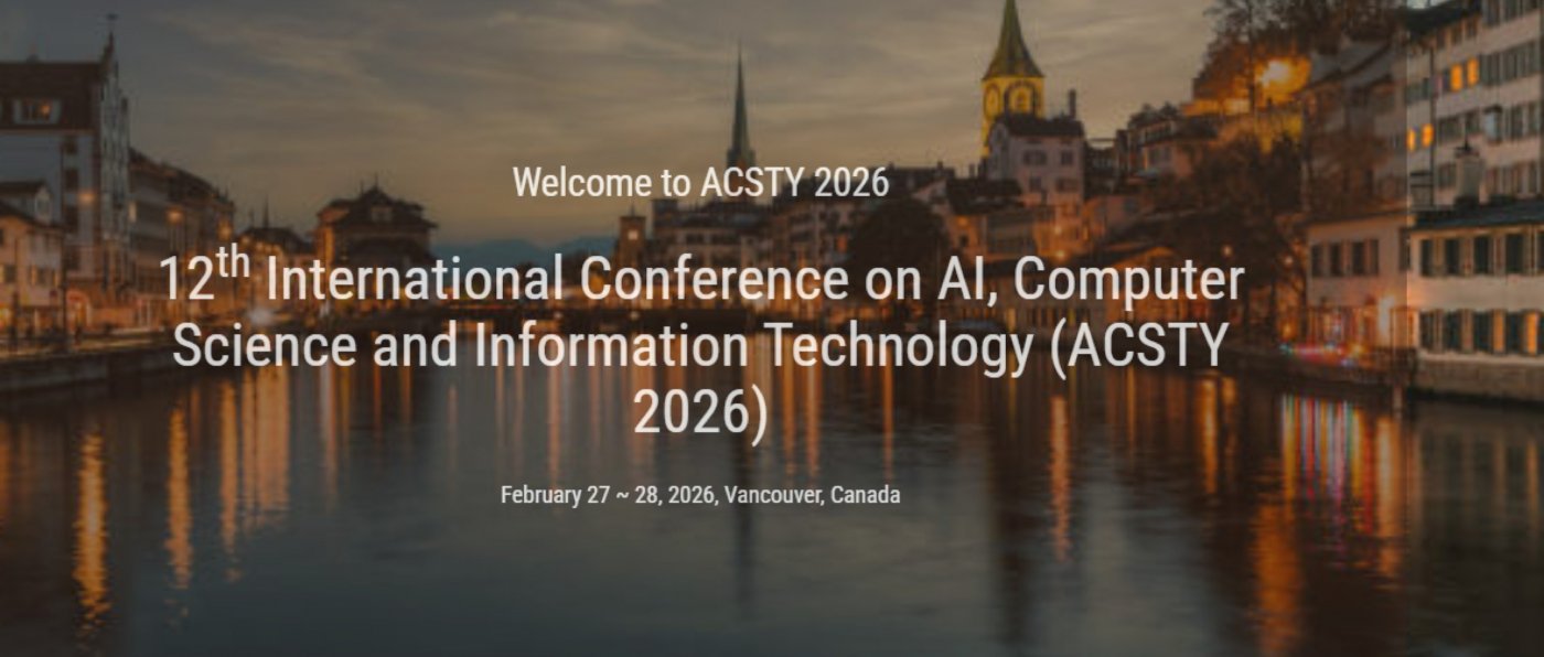 12th International Conference on AI, Computer Science and Information Technology (ACSTY 2026) provides a premier global forum for researchers, practitioners, and industry experts to present and discuss the latest innovations, trends, and challenges across the rapidly evolving landscape of Artificial Intelligence, Computer Science, and Information Technology. As AI reshapes the landscape of modern computing, ACSTY 2026 is dedicated to showcasing forward looking research that pushes the boundaries of intelligent technologies while continuing to support the full spectrum of core and emerging areas in Computer Science and Information Technology