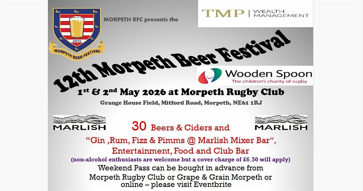 Morpeth RFC presents the 12th Morpeth Beer Festival on 1st & 2nd May 2026 @ Morpeth Rugby Club.