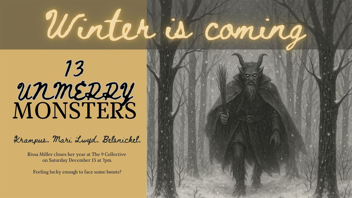 Settle in for a spooky winter evening as we welcome Rissa Miller back to the 9 Collective for an evening exploring tales of unmerry monsters and other dark traditions of the Yuletide.