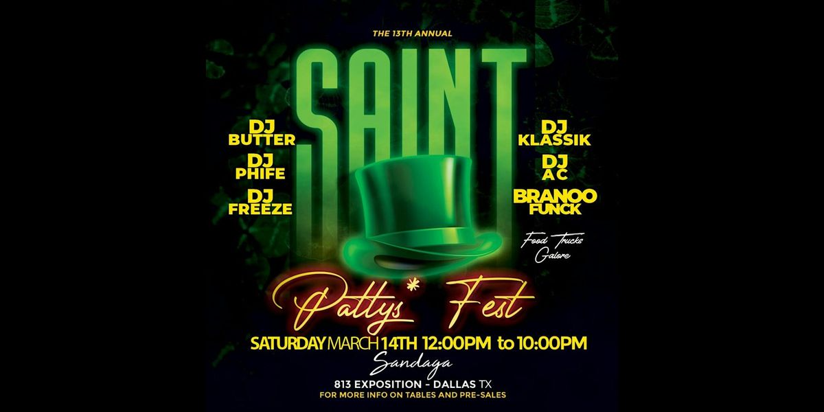Get ready for the 13th Annual St. Pattys* Day Fest at Sandaga! This year's entertainment lineup features Branoofunck, DJ Phife, DJ Butter, DJ Kilassik, DJ AC, and DJ Freeze. We've also added over 10 food truck options and more satellite bars. Don't wait in line – get your pre-sale tables and tickets today! They'll sell out fast.