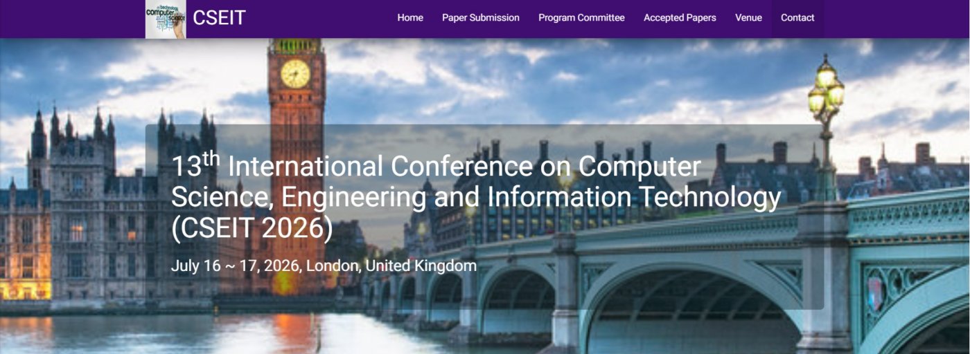 13th International Conference on Computer Science, Engineering and Information Technology (CSEIT 2026) will provide an excellent international forum for sharing knowledge and results in theory, methodology and applications of Computer Science, Engineering and Information Technology. The Conference looks for significant contributions to all major fields of the Computer Science and Information Technology in theoretical and practical aspects. The aim of the conference is to provide a platform to the researchers and practitioners from both academia as well as industry to meet and share cutting-edge development in the field.