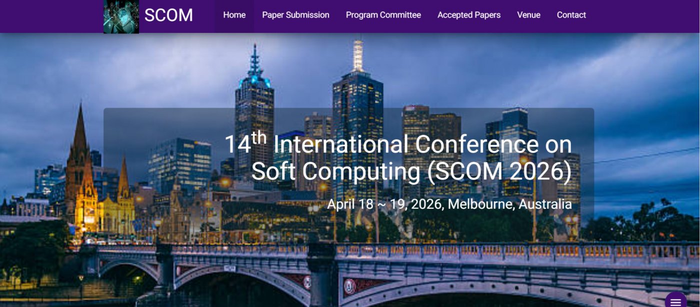14th International Conference on Soft Computing (SCOM 2026) provides a forum for researchers who address this issue and to present their work in a peer-reviewed forum. Authors are solicited to contribute to the conference by submitting articles that illustrate research results, projects, surveying works and industrial experiences that describe significant advances in the following areas, but are not limited to these topics only.