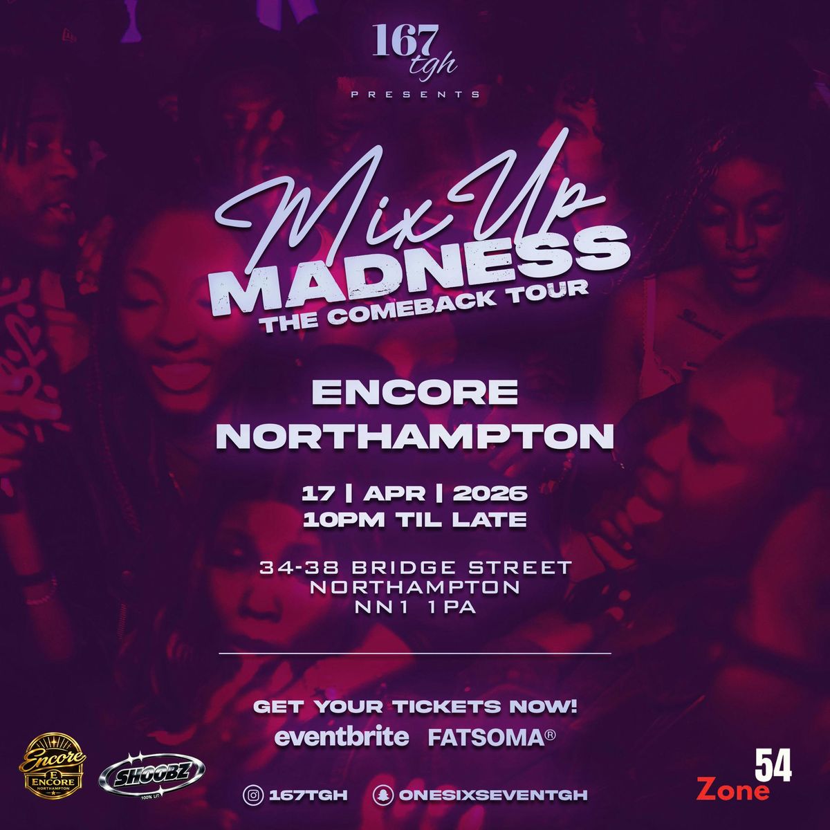DATE: Friday the 17th April 2026TIME: 10PM - 04:00AM (Queue starts @ 9PM w/ late fee starting at 10:30PM)LOCATION: Encore Northampton, Northampton, NN1 1PAMAIN ATTRACTIONS
