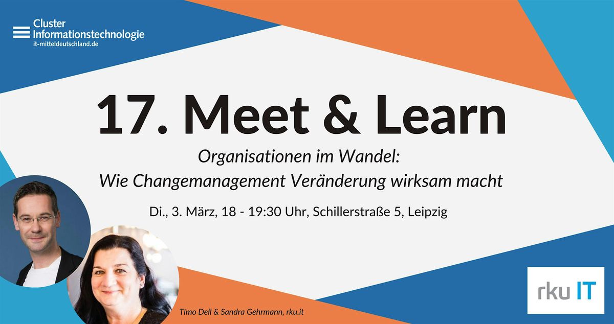 Im 17. Meet & Learn beleuchten wir, wie wirksames Changemanagement Orientierung gibt, Menschen mitnimmt und aus Unsicherheit Gestaltungskraft macht. Anhand praxisnaher Impulse und gemeinsamer Diskussionen geht es darum, Veränderung nicht nur zu planen, sondern nachhaltig umzusetzen – mit Haltung, Struktur und Beteiligung.