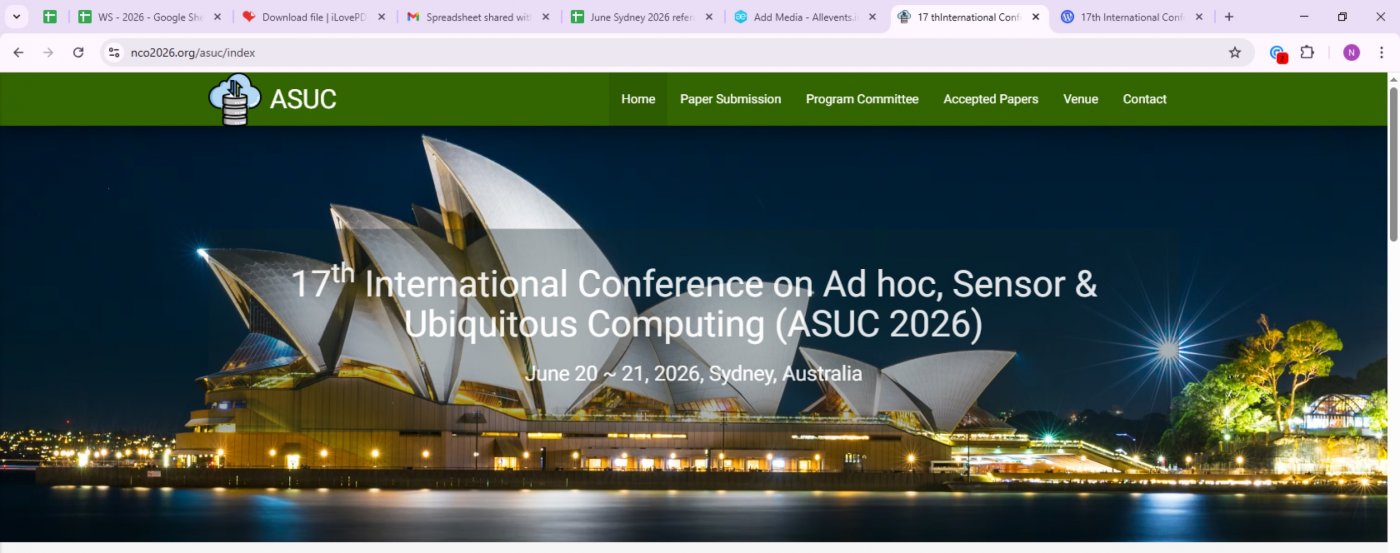 17th International Conference on Ad hoc, Sensor & Ubiquitous Computing (ASUC 2026)
