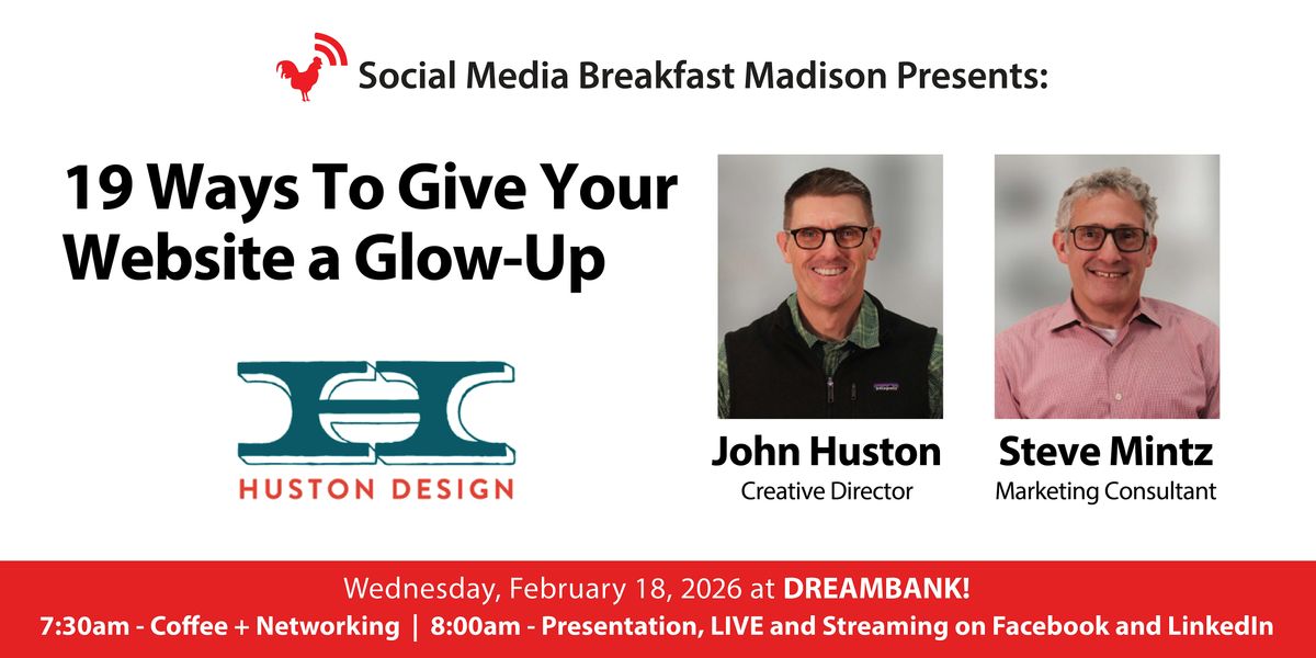 If you aren’t able to join us in person, our sponsor, Live Well Video will be LIVE STREAMING this event on our Social Media Breakfast Madison Facebook page, YouTube channel and on LinkedIn beginning at 8:00am.