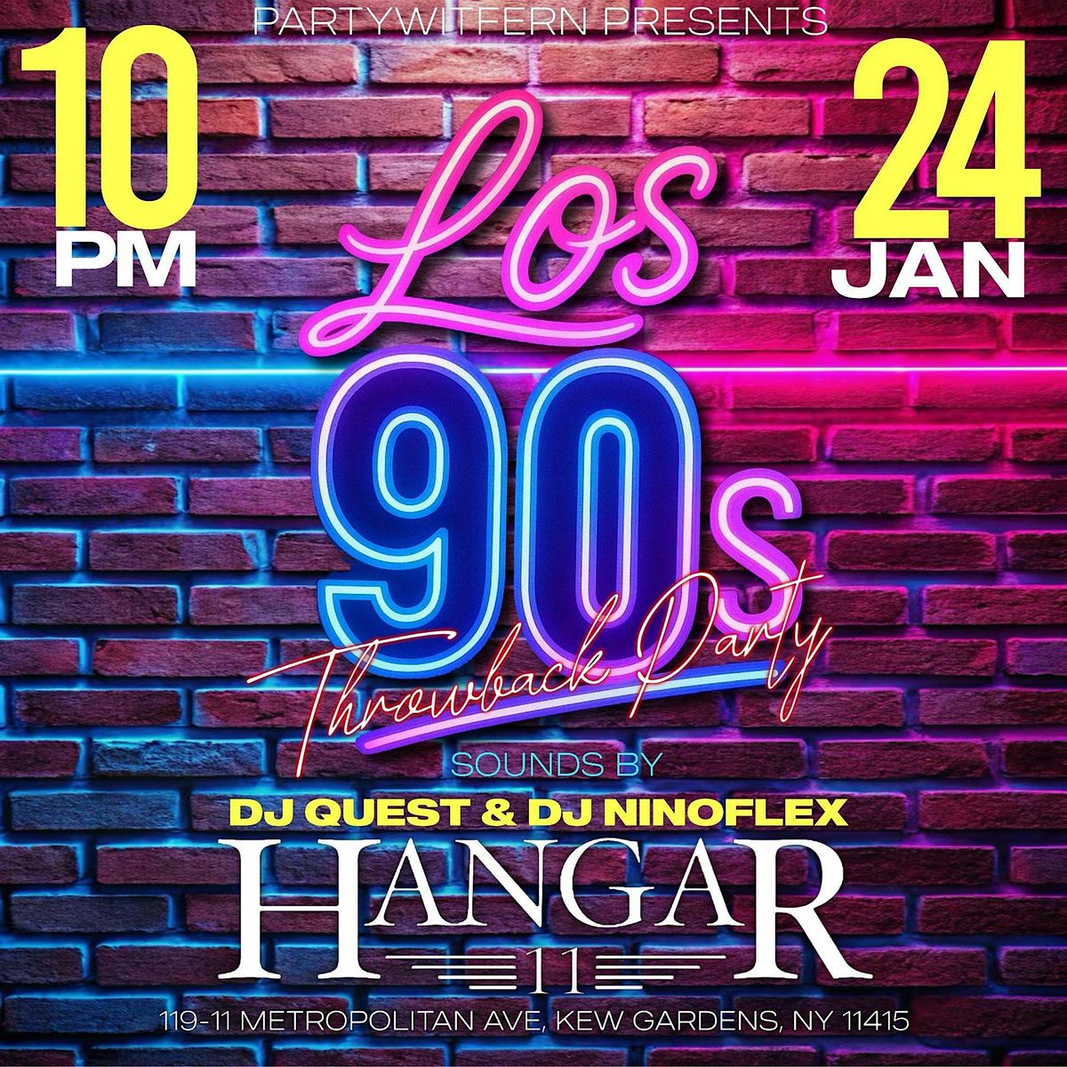 Party with Fern, Willy Benz & Hangar 11 Present a 1990s Music & Theme Party in the heart of New York City on January 24, 2026. Come Join Us!About this Event