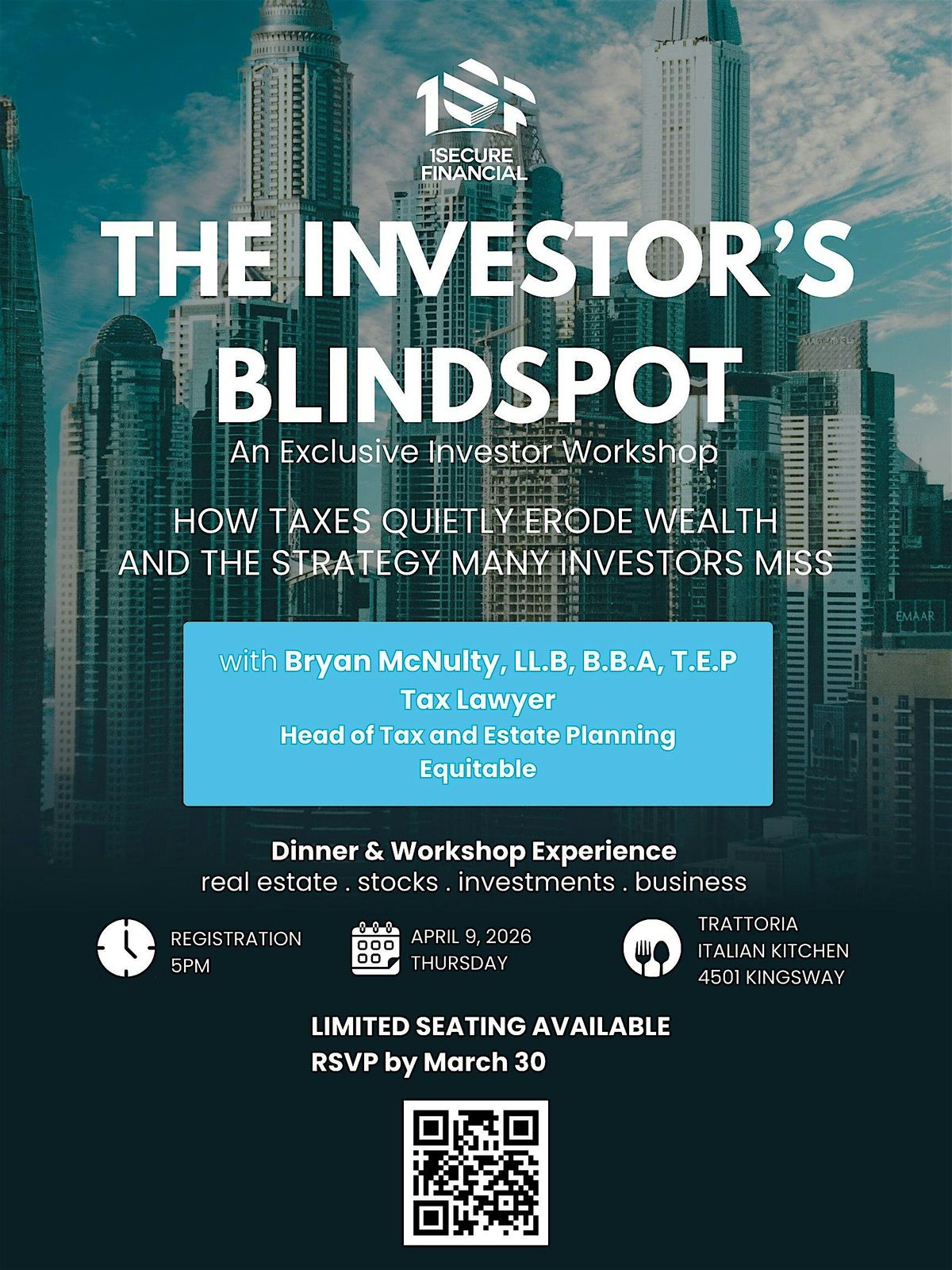 Join us at Trattoria by Italian Kitchen on April 9, 2026 at 5:00 PM (Pacific Time) for The Investor’s Blind Spot — How Taxes Quietly Erode Wealth and the Strategy Many Investors Miss.