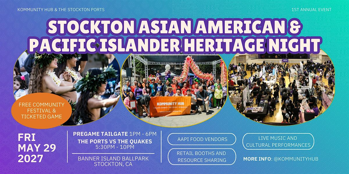 Kommunity Hub is BACK! Join us for an unforgettable afternoon at the ballpark as we kick off our 1st Annual Asian American Pacific Islander Heritage Night with the Stockton Ports!