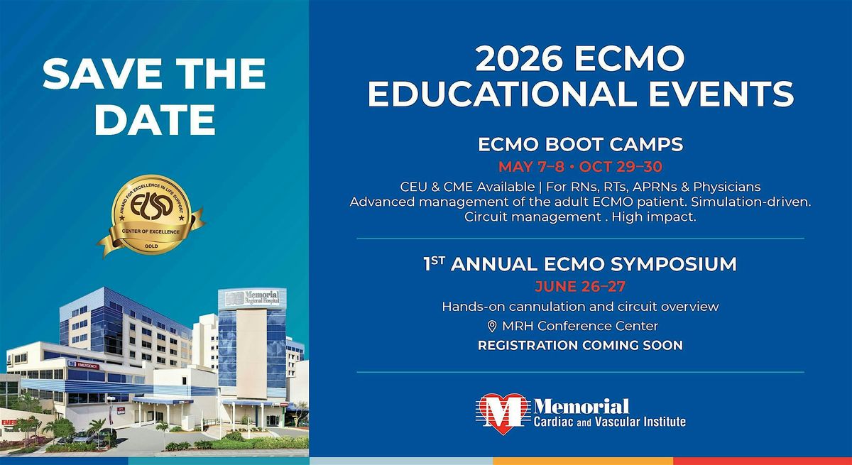 Memorial Cardiac and Vascular Institute at Memorial Healthcare System will host its 1st Annual ECMO Symposium: Expertise in Practice, Compassion in Action, Life in Focus, June 26-27, at Memorial Regional Hospital, Conference Center.