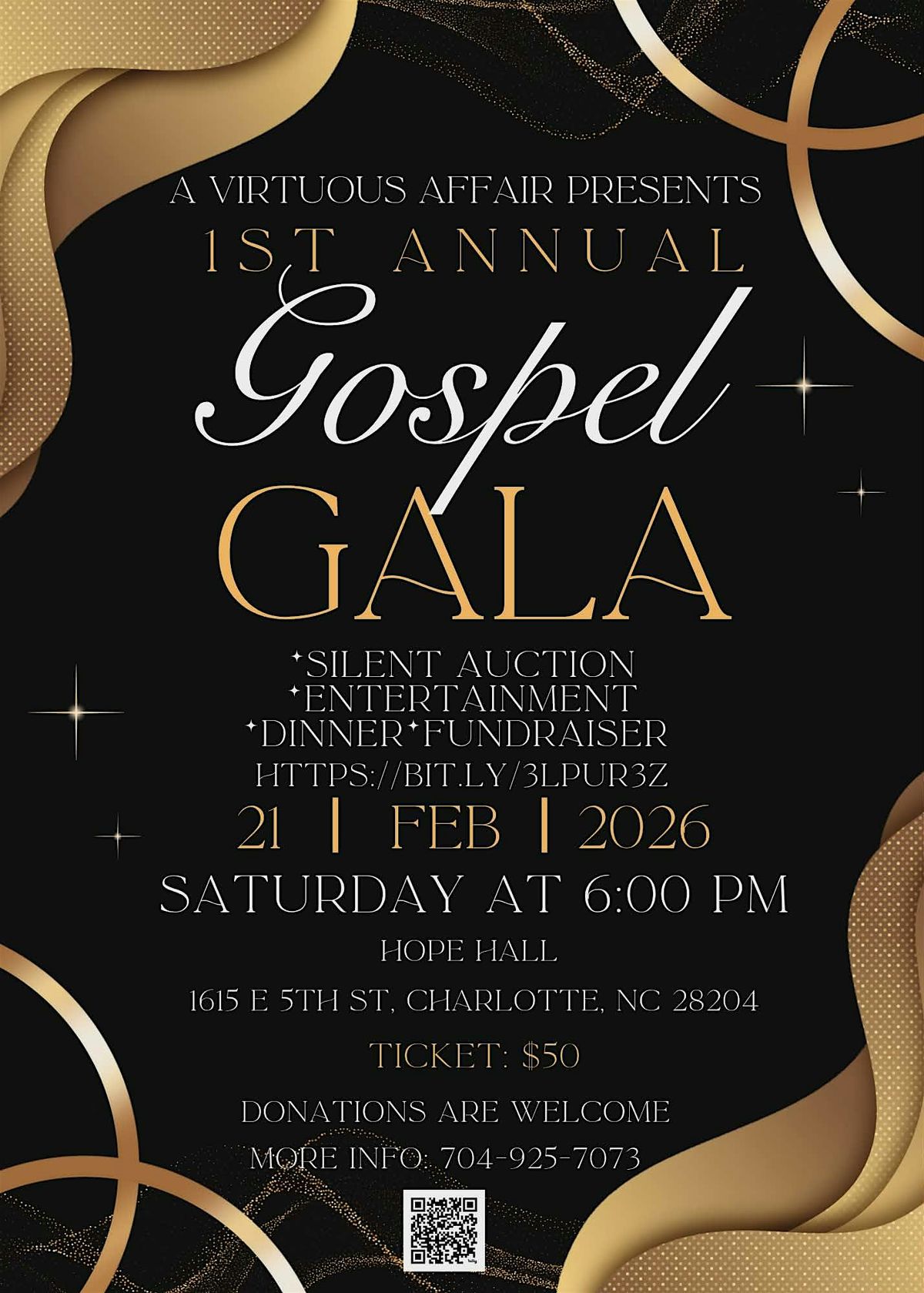 A Virtuous Affair presents the 1st Annual Gospel Gala. This event is a fundraiser to support the gospel community. It will be a night of goodmusic, good food, and wonderful performances. There will be a silent auction. A local church in the community will be recognized for the great work they do and will receive a donation to assist in their efforts to feed into the community.