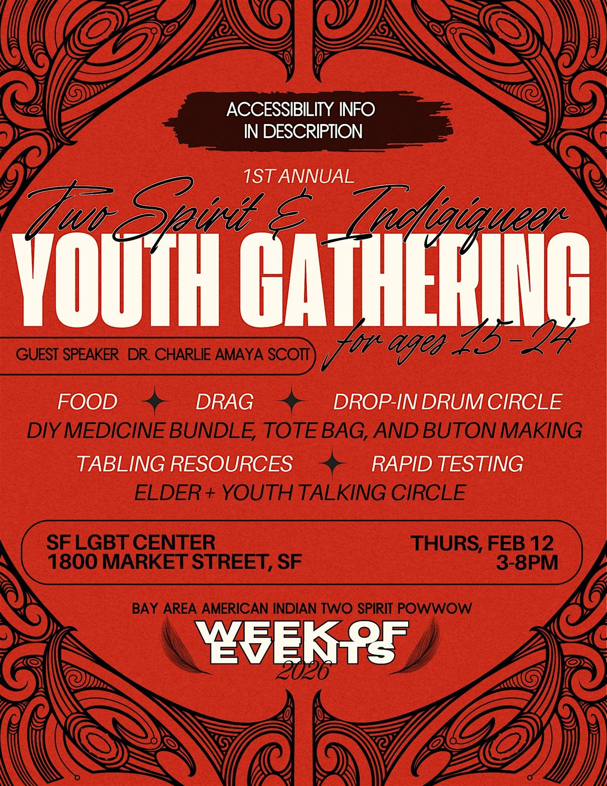 Held on Thursday, February 12 from 3PM - 8PM at the SF LGBT. This gathering centers joy, visibility, healing, and cultural continuity through a vibrant and youth-centered program designed to nourish mind, body and spirit.