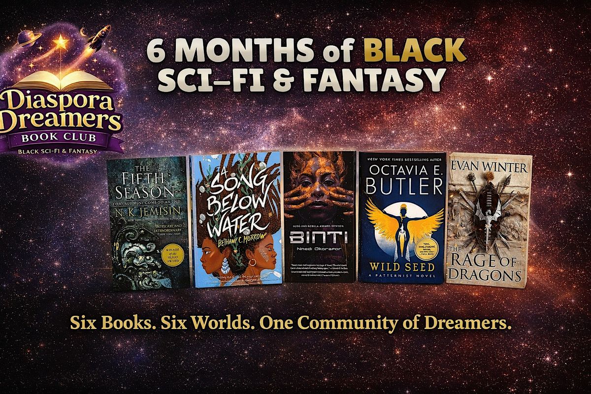Join the Diaspora Dreamers Book Club for a six-month reading journey celebrating Black science fiction and fantasy. Together we’ll explore visionary stories from some of the most influential and exciting authors in the genre while building community with fellow readers, dreamers, and lovers of speculative storytelling.