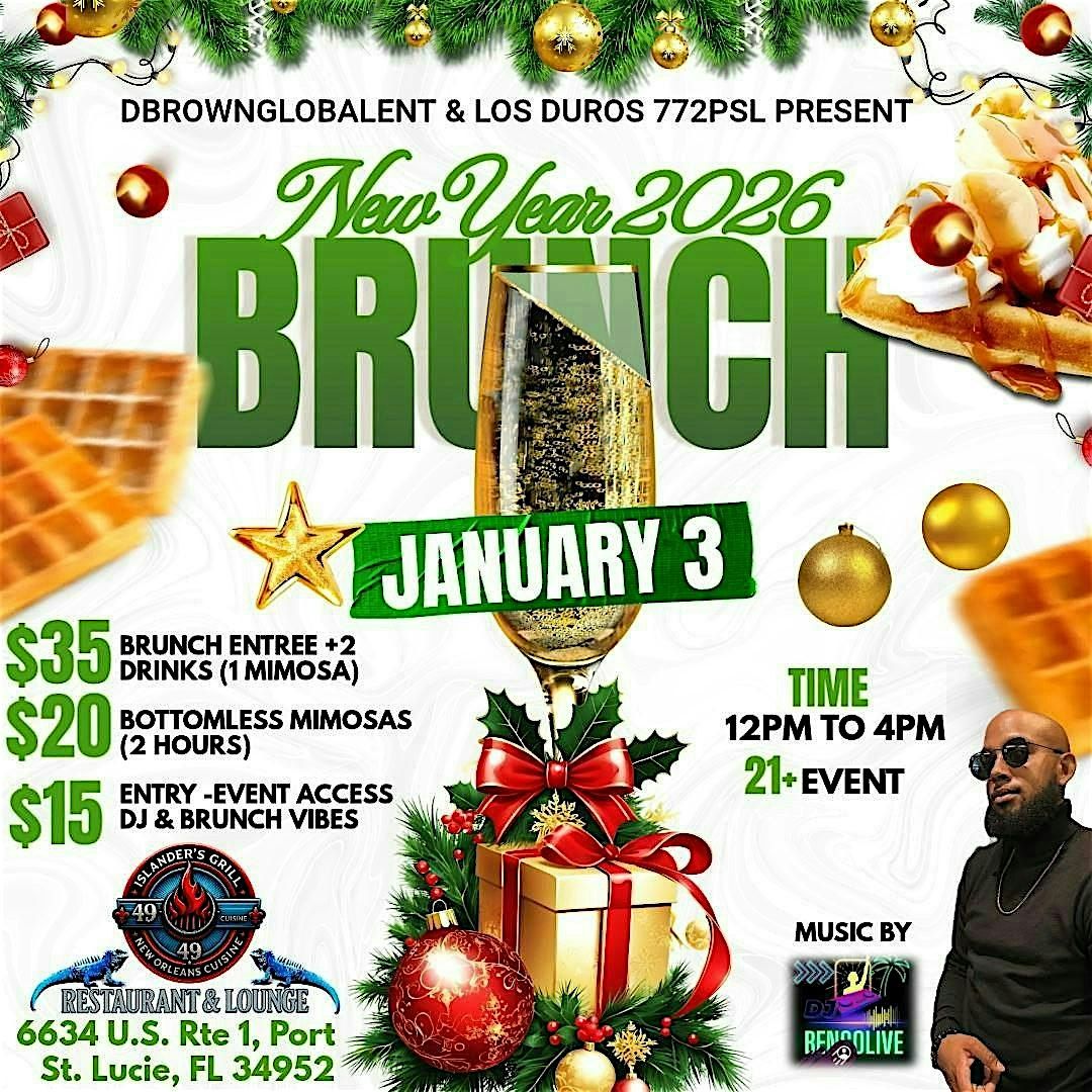 Start the New Year off right at New Year 2026 Brunch, presented by DBrownGlobalEnt & Los Duros 772PSL. Join us for an afternoon of great food, bottomless mimosas, and nonstop DJ BenSoLive Hosted by DbrownGlobal in a high-energy brunch atmosphere.