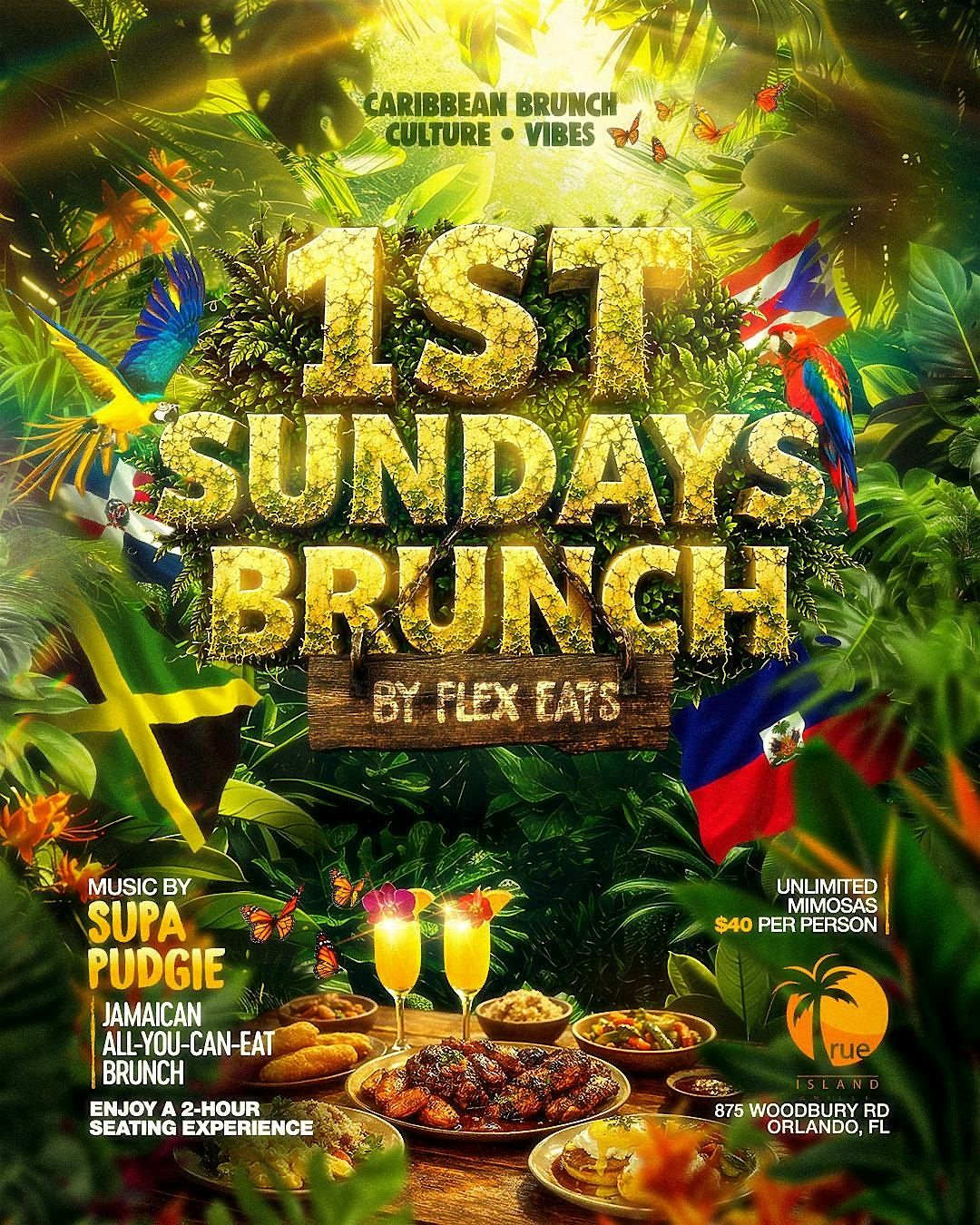 1ST SUNDAY'S BRUNCH: ISLAND BRUNCH PARTY- $40 UNLMITED MIMOSAS + FOOD