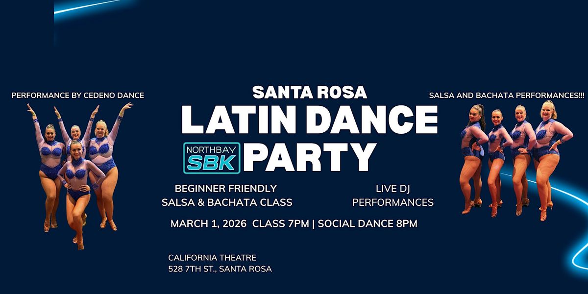 Get ready to move your feet at the 1st Sundays Santa Rosa Latin Dance Party Social! This is your chance to enjoy an awesome night of Latin rhythms and great vibes. Beginner friendly salsa and bachata class starts at 7pm, and is included FREE with a ticket. Show off your new moves when social dancing starts at 8pm. DJ plays a mix of Salsa, Bachata, and Cumbia. This in-person event is one of the largest latin dance socials in Sonoma County! Bring your friends, show off your moves, or learn something new. Don't miss out on a night full of energy and social dancing—see you on the dance floor!
