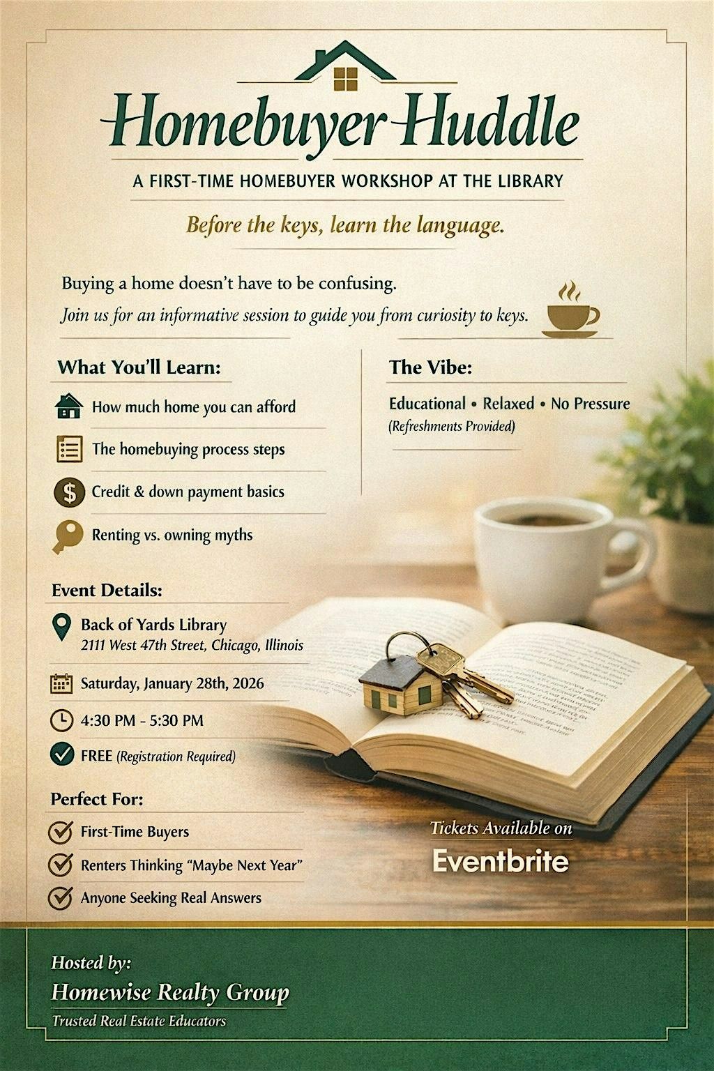Join our 1st Time Home Buyers Huddle for an easy-going, in-person meetup where you can learn the ropes, swap tips, and get your questions answered by experts and fellow first-timers. Whether you're just dreaming or ready to dive in, this gathering is all about making the home buying journey simple and fun. Don’t miss out on the chance to connect and get inspired! Learn about down payment assistance and get the ball rolling.