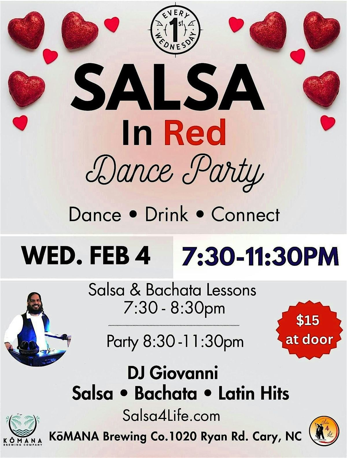 1st Wednesdays Salsa in RED Dance Party at KōMANA Brewing Co.