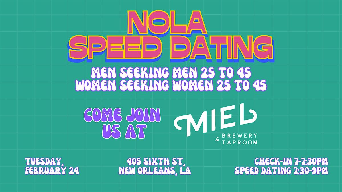 Thank you for your interest in attending a NOLA Speed Dating Event! We will be hosting this round at Miel Brewery at 405 Sixth St. This event is designed for women seeking women and men seeking men between the ages of 25 and 45. There will be two events happening at the same time with an opportunity to mingle after.