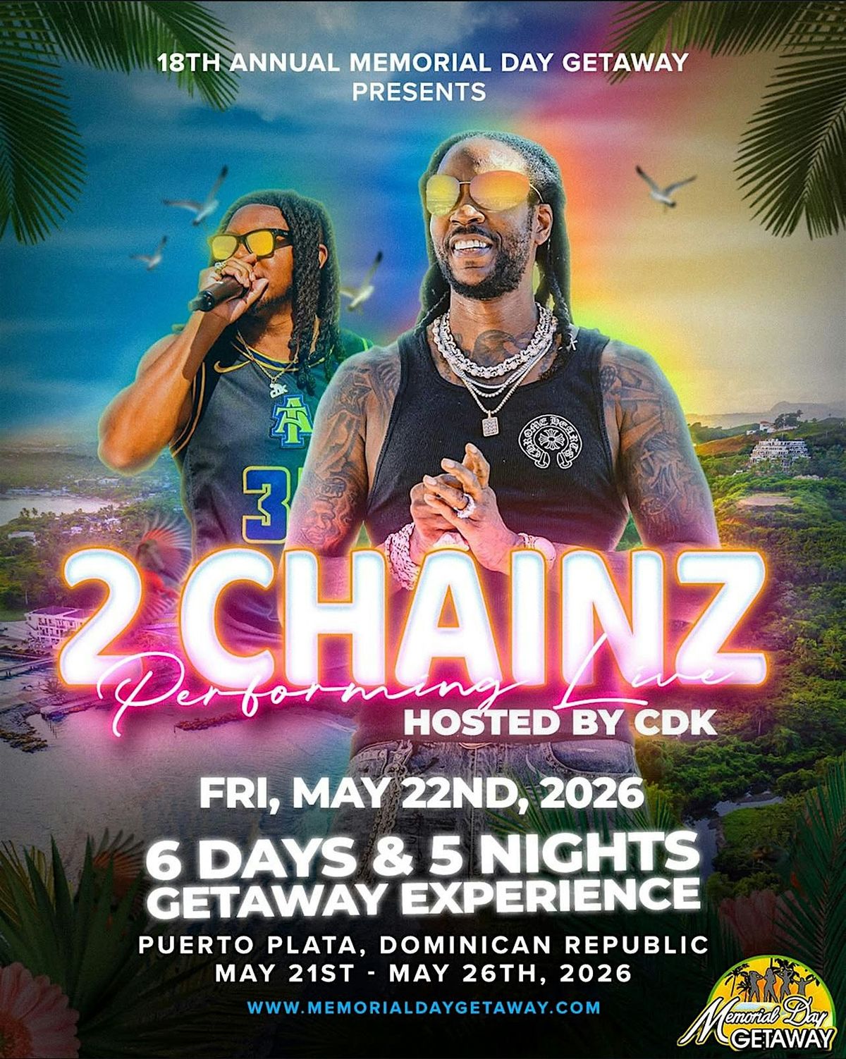 The 18th Annual Memorial Day Getaway brings you 2 Chainz performing live from Puerto Plata, DR May 21 - 26, 2026!